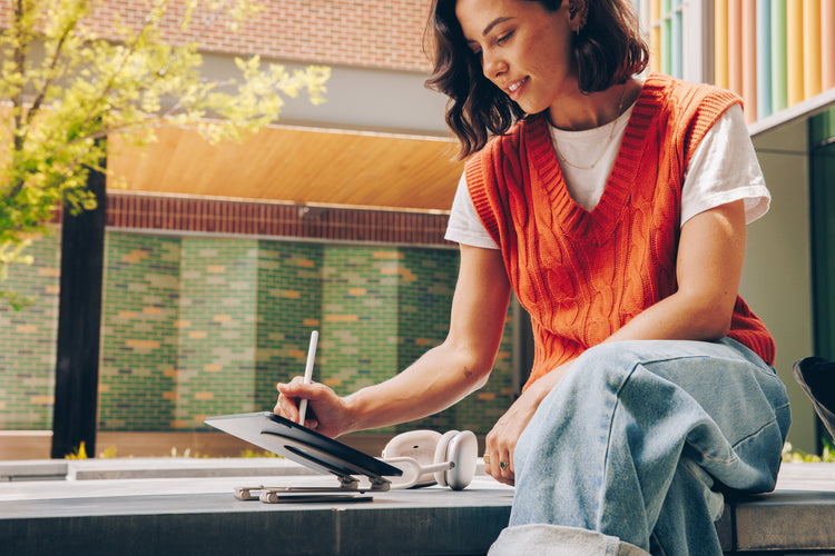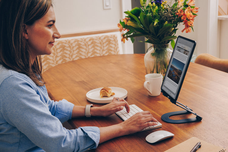 Supports both portrait and landscape modes with smooth, precise adjustability. Perfect for sketching, typing, or video calls.